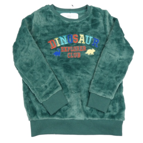 Zelená zamatová mikina s nápisom a dinosaurami F&F