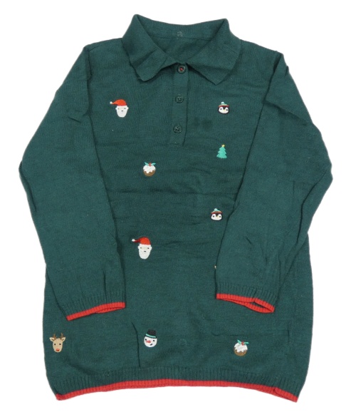 Tmavozeleno-červený sveter s vánočním motívom a golierikom Nutmeg