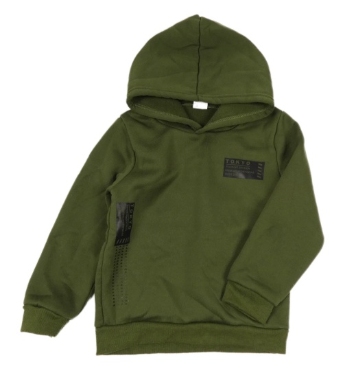 Tmavokhaki tepláková mikina s nápismi a kapucňou