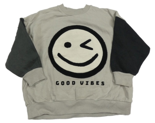 Sivá oversize mikina so smajlíkom a čiernymi rukávy Next