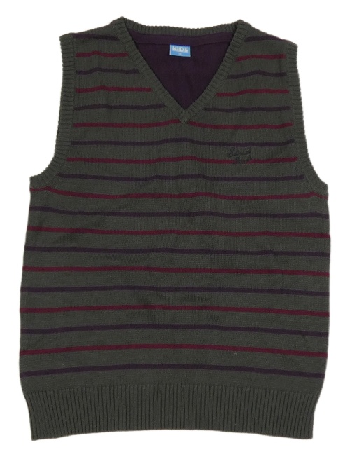 Tmavošedo-fialová pruhovaná svetrová vesta