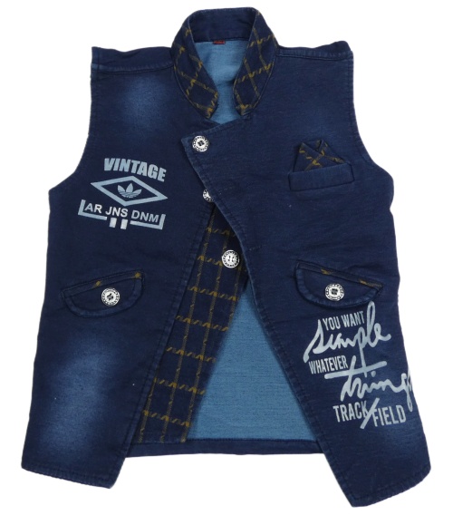 Tmavomodrá tepláková/riflová vesta s nápismi