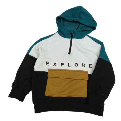Bielo-čierno-zelená mikina s nápisom a kapucňou Shein