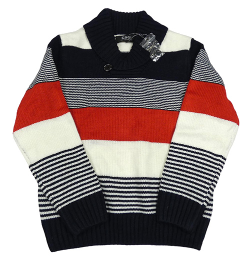 Tmavomodro-bielo-červený pruhovaný sveter s golierom