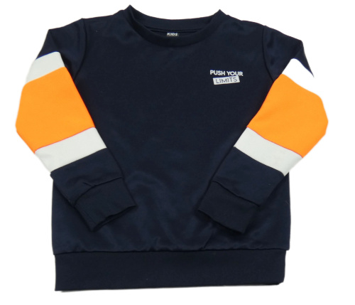 Tmavomodro-bielo-kriklavoě oranžová športová mikina s nápismi KIDS