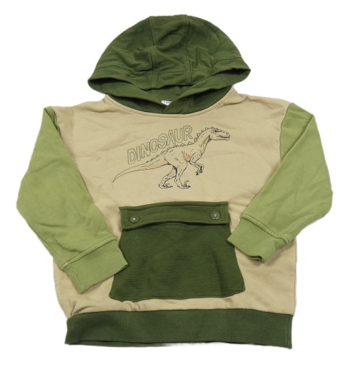 Béžovo-khaki mikina s dinosaurom a kapucňou