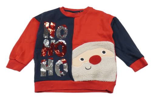 Červeno-tmavomodrá mikina so Santou a nápisem z překlápěcích flitrů F&F