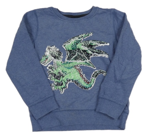 Modrá melírovaná mikina s drakem z překlápěcích flitrů dopodopo