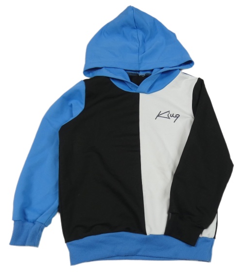 Modro-čierno-biela mikina s nápisom a kapucňou