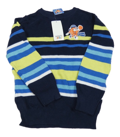 Nové - Tmavomodro-bielo-zelený pruhovaný sveter s loptou