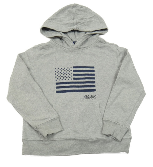 Sivá melírovaná mikina s vlajkou a kapucňou Ralph Lauren