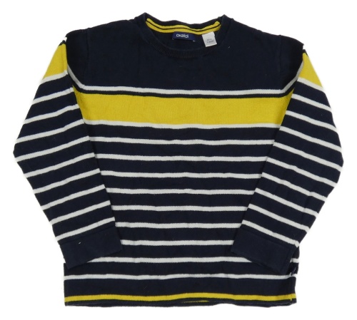 Tmavomodro-bielo-žltý ľahký sveter s pruhmi Okaidi