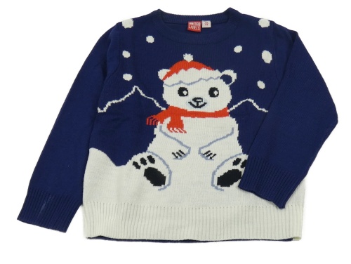 Tmavomodrý bodkovaná ý sveter s ledním medvěďom
