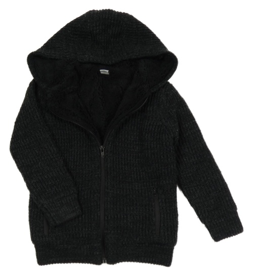 Sivo-čierny melírovaný prepínaci zateplený sveter s kapucňou Tu