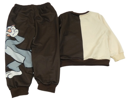2 set - hnedo-béžová mikina s Tomem a Jerrym + tepláky shein