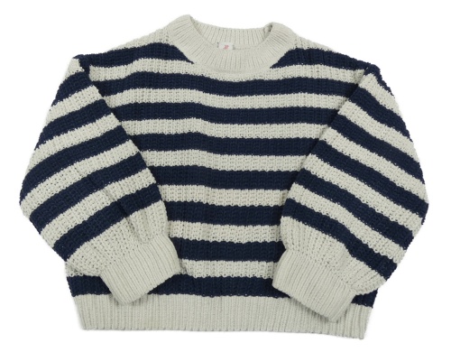 Tmavomdro-biely pruhovaný žinylkový sveter Topolino