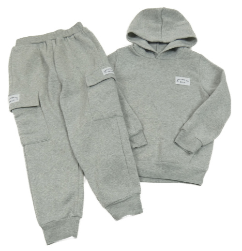 2set - Sivá mikina s nášivkou a kapucí + tepláky s vreckami