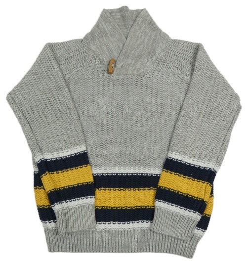 Sivý sveter so žlutým a tmavomodrým pruhom Lupilu