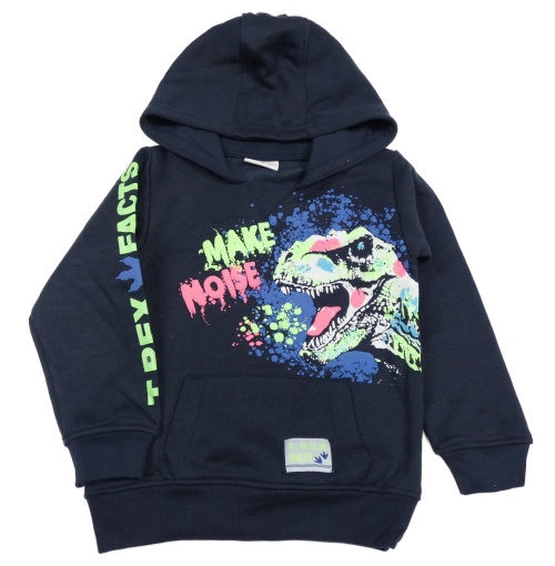 Tmavomodrá mikina s dinem a nápismi a kapucňou
