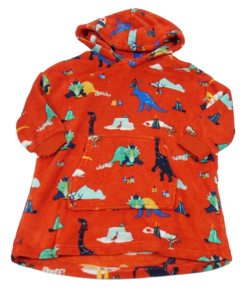 Červená plyšová domáceá oversize mikina s dinosaurami a kapucňou M&S