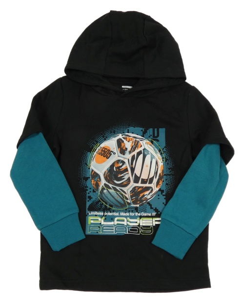 Čierno-petrolejová mikina s futbalovým loptou a kapucňou F&F