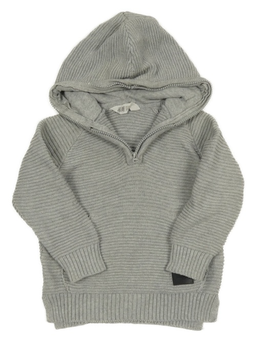 Sivý melírovaný rebrovaný sveter s vreckom s nášivku a kapucňou H&M