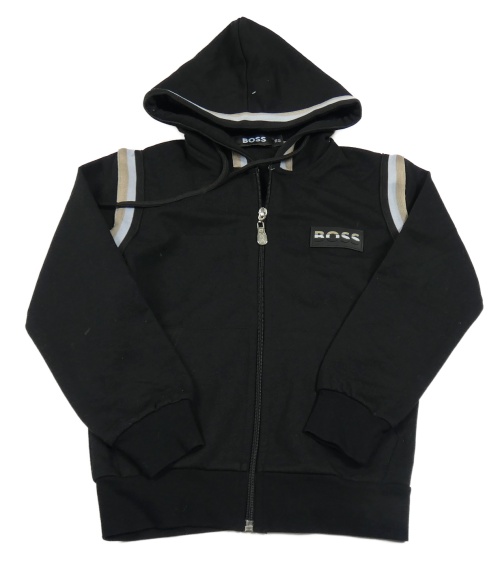 Čierno-béžovo-sivá prepínaci mikina s pruhmi a nášivkou a kapucí Boss