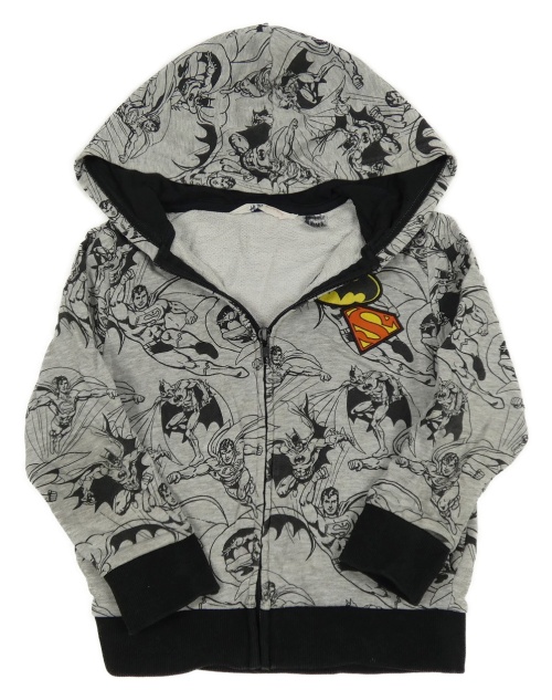 Sivo-čierna melírovaná prepínaci mikina s Batmany a Supernany a kapucňou H&M