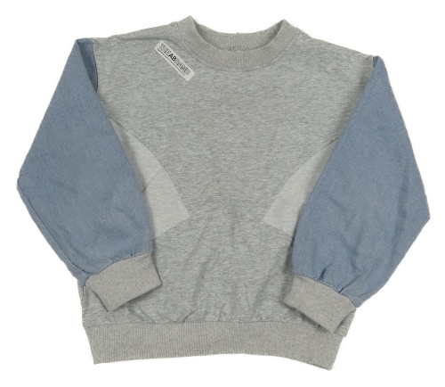 Sivo-světlemodro-modrá melírovaná teplákovo/riflová mikina s nášivkou