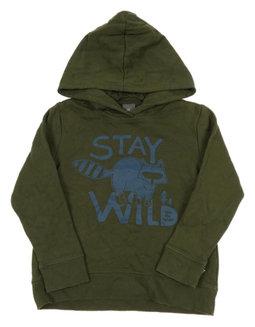 Tmavokhaki mikina s mývalem a nápismi a kapucňou