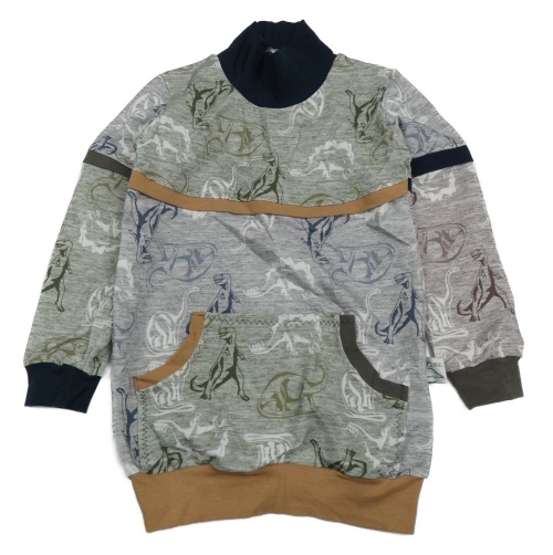 Šedo-béžovo-khaki dlhá mikina s dinosaurami