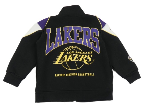 Čierno-tmavofialovo-biela tech fleece prepínaci mikina s nápisy - Lakers