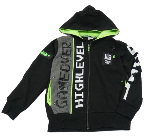 Čierno-tmavošedo-kriklavoě zelená prepínaci mikina s nápismi a kapucňou