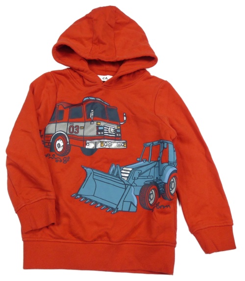 Červená mikina s hasiči s bágrom a kapucňou C&A