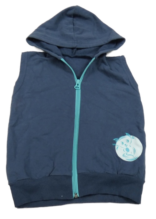 Tmavomodrá tepláková prepínaci vesta s nášivkou a kapucňou