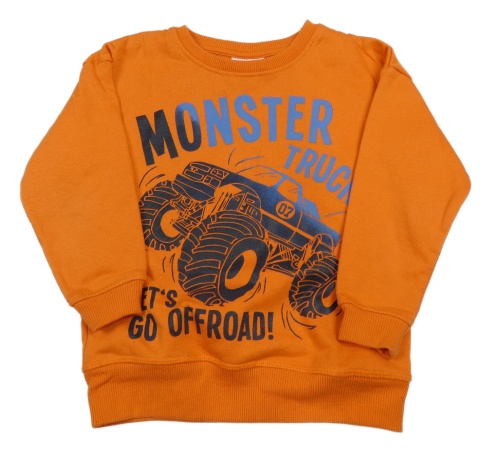 Tmavooranžová mikina s monster truckem a nápismi INFINITY KIDS