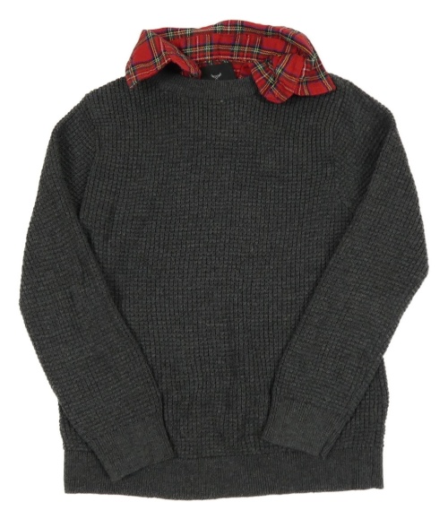 Tmavosivý sveter s kockovaným košeľovým golierom