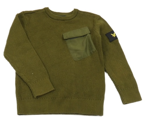 Khaki rebrovaný sveter s vreckom a nášivkou LYLE&SCOTT