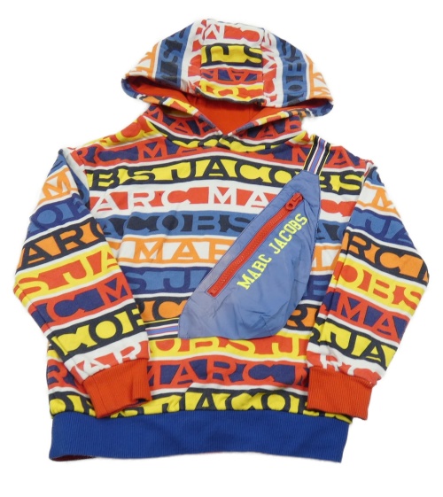 Farebná pruhovaná mikina s nápismi a ledvinkou/kapsou a kapucňou MARC JACOBS