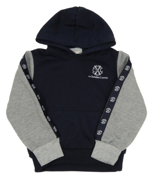 Tmavomodro-sivá mikina s výšivkami a kapucňou