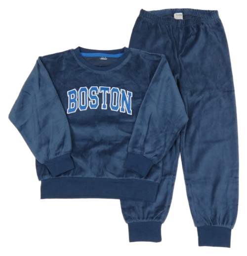 2set - Tmavomodrá zamatová mikina s nápisem + tepláky Zeeman