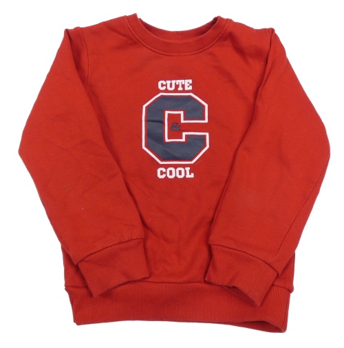 Červená mikina s písmenkom a nápismi