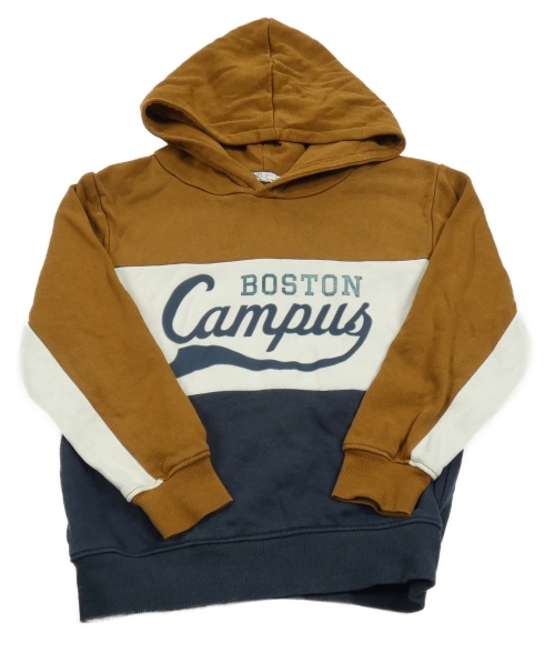 Hnedo-bielo-tmavomodrá mikina s nápisom a kapucňou H&M