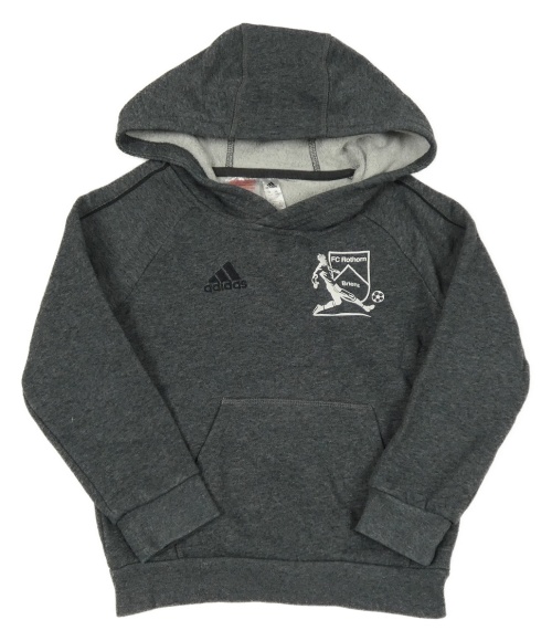 Tmavosivá melírovaná mikina s fotbalistou a vreckom a kapucňou Adidas