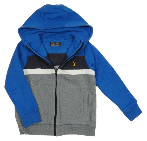Sivo-modro-tmavomodrá prepínaci mikina s nášivkou a kapucňou Next