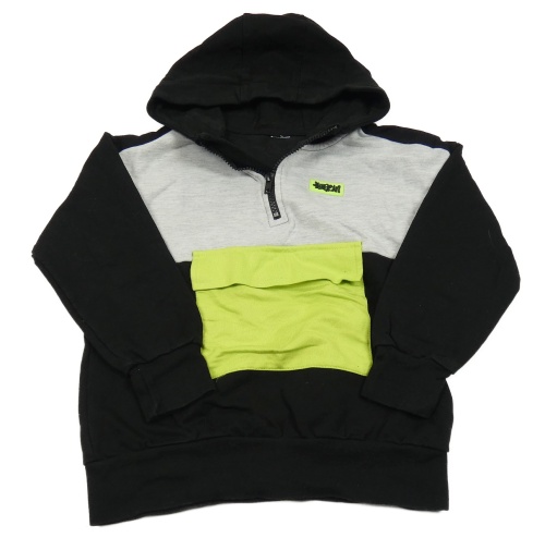 Čierno-světlešedá/melírovaná mikina s nášivkou a vreckom a kapucňou