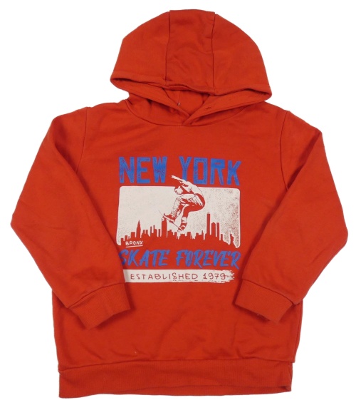 Červená mikina so skateboardistou a nápismi a kapucňou PRIMARK