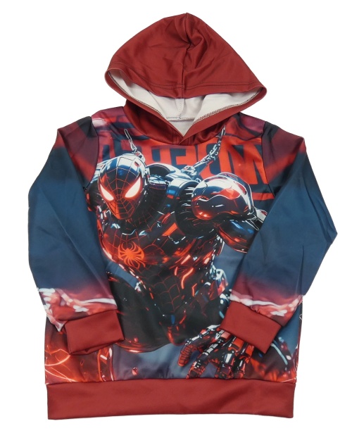 Tmavomodro-červená mikina so Spidermanem a kapucňou