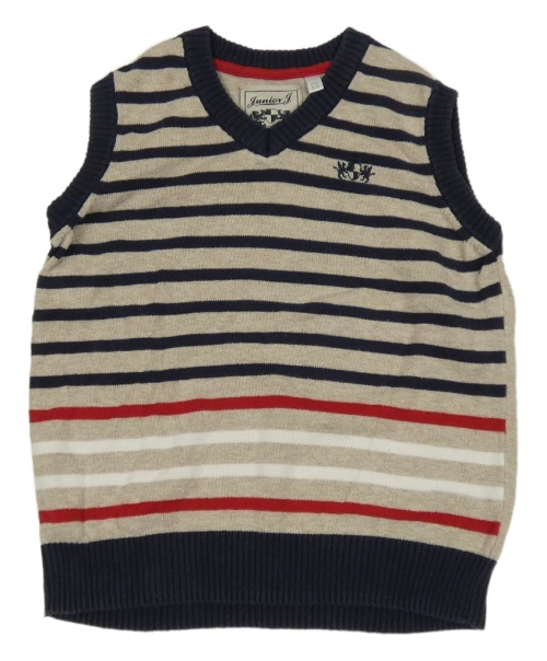Béžovo-tmavomodro-červená pruhovaná svetrová vesta