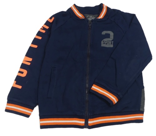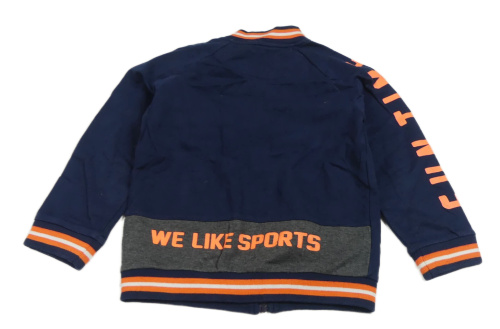 Tmavomodrá prepínaci mikina s číslom a nápisom a pruhmi mayoral
